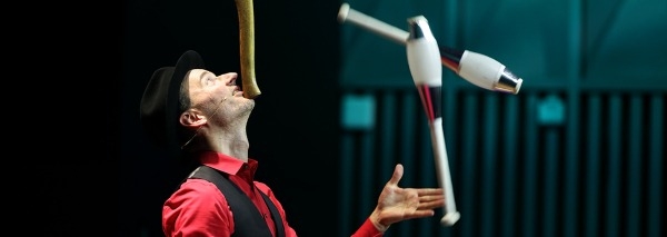 Avec humour, charme et toujours une pointe d'autodérision, le jongleur vedette Kaspar Tribelhorn présente à vos invités un spectacle qui les fait rire et les fait vibrer. Jonglage et prouesses audacieuses se succèdent, l'esprit et la comédie sont toujours présents - même lorsque le jongleur est en train de tenir une hache en équilibre sur sa tête et de couper une carotte en deux. Lors du grand final sur l'échelle d'artiste, un invité du public assiste l'artiste. Le spectacle peut être réservé en tant que bloc unique ou en plusieurs blocs que l'artiste présente au cours de votre fête (à partir de 10 à 40 minutes).